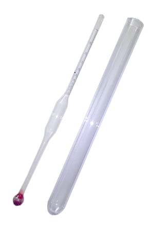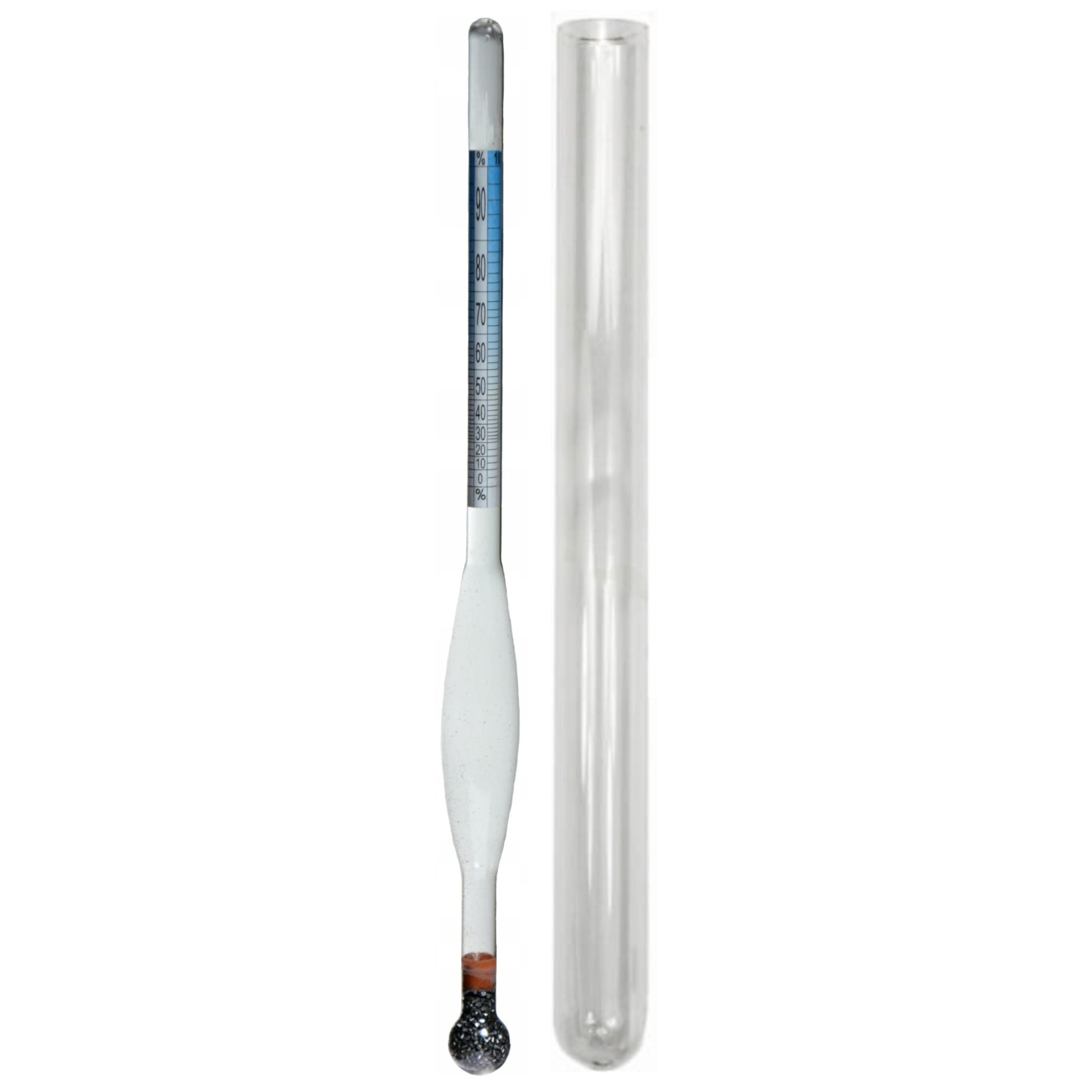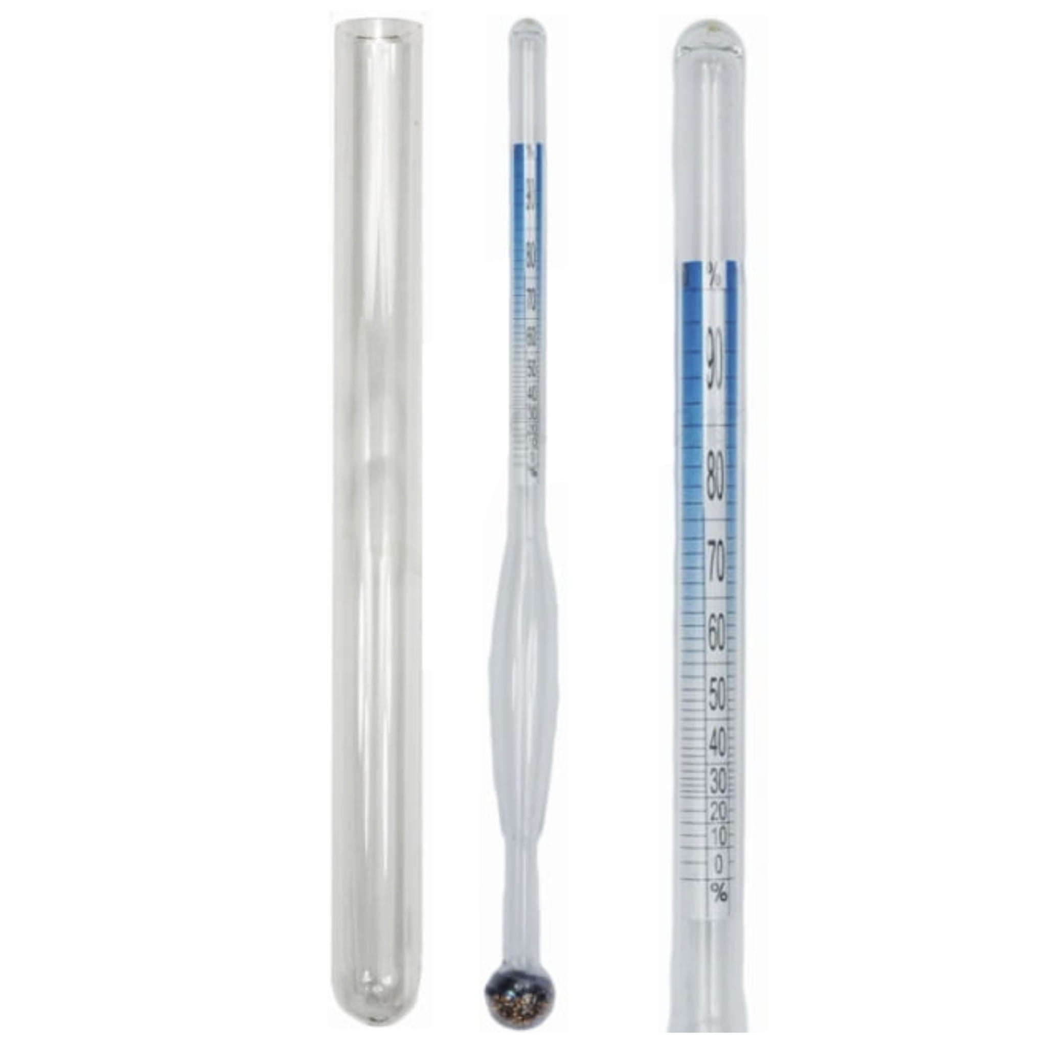 ✔️ Ponieważ urządzenia skalowane są w temperaturze 20°C, zaleca się dokonywanie odczytu w tej samej temperaturze. Ze względu na to, że ciecz zmienia swoje stężenie (cząsteczki rozprężają się i kurczą) pod wpływem temperatury, to właśnie pomiar dokonywany w 20°C będzie najbardziej miarodajny i precyzyjny. Szklany alkoholomierz wyposażony jest w nietłukącą się probówkę, która została wykonana z materiału nadającego się do kontaktu z żywnością - również alkoholami. Korek dołączony do probówki zabezpiecza zaś alkoholomierz przed wysunięciem w trakcie przechowywania.