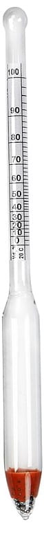 - Alkoholomierz do odczytu zawartości % alkoholu w spirytusie lub czystych wódkach nie zawierających cukru