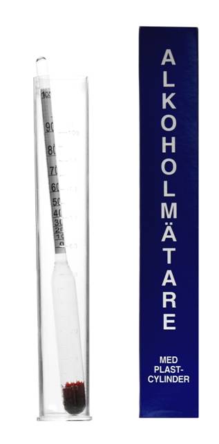 - Alkoholomierz do odczytu zawartości % alkoholu w spirytusie lub czystych wódkach nie zawierających cukru