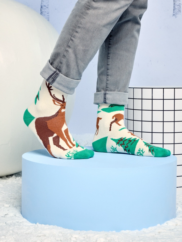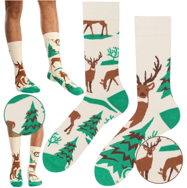 W Twojej rodzinie jest zapalony myśliwy? Wesołe skarpetki ze wzorem nawiązującym do jego hobby na pewno go ucieszą i będą mu towarzyszyć podczas leśnych przygód.