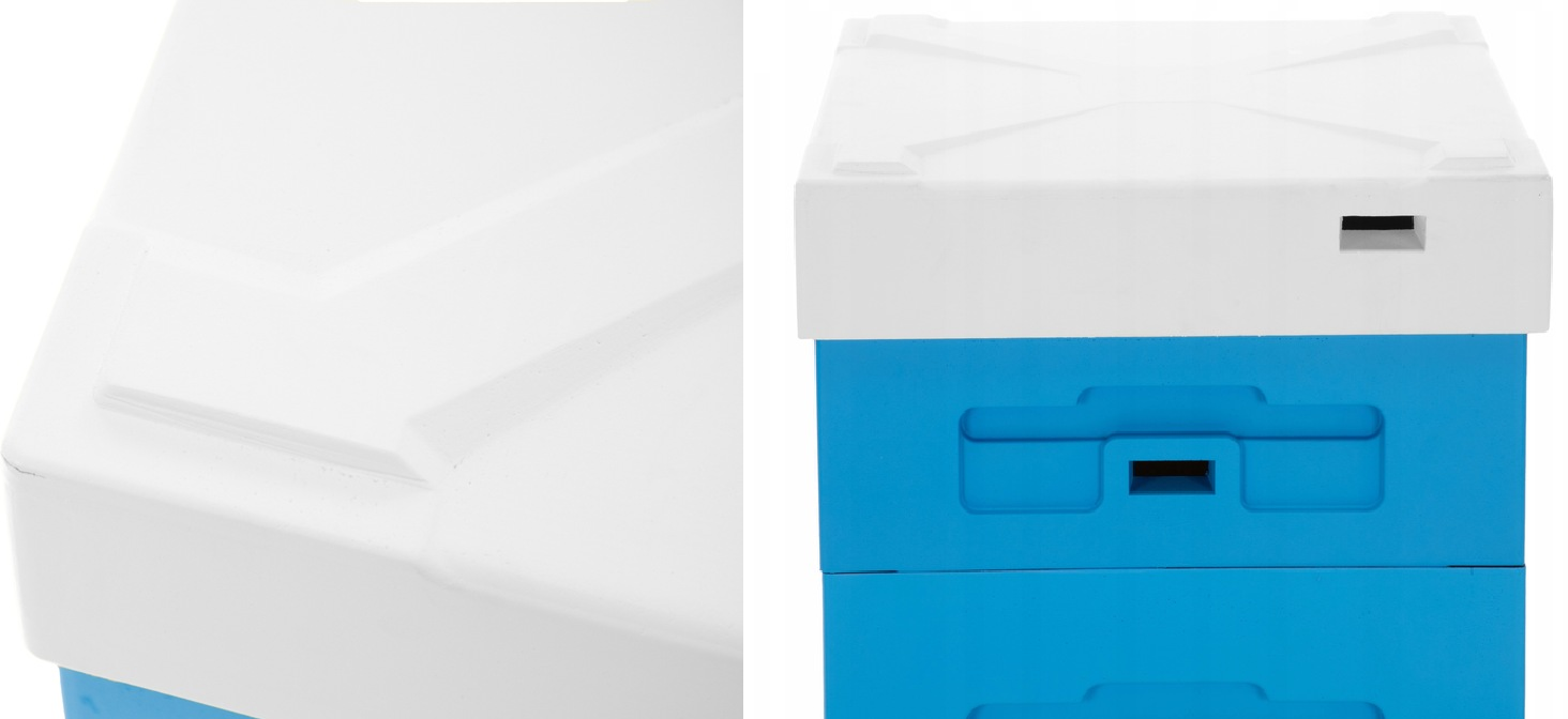 - Zmodyfikowany kształt: umożliwia bezpieczne ustawianie daszków jeden na drugim, co ułatwia magazynowanie oraz organizację pracy w pasiece.