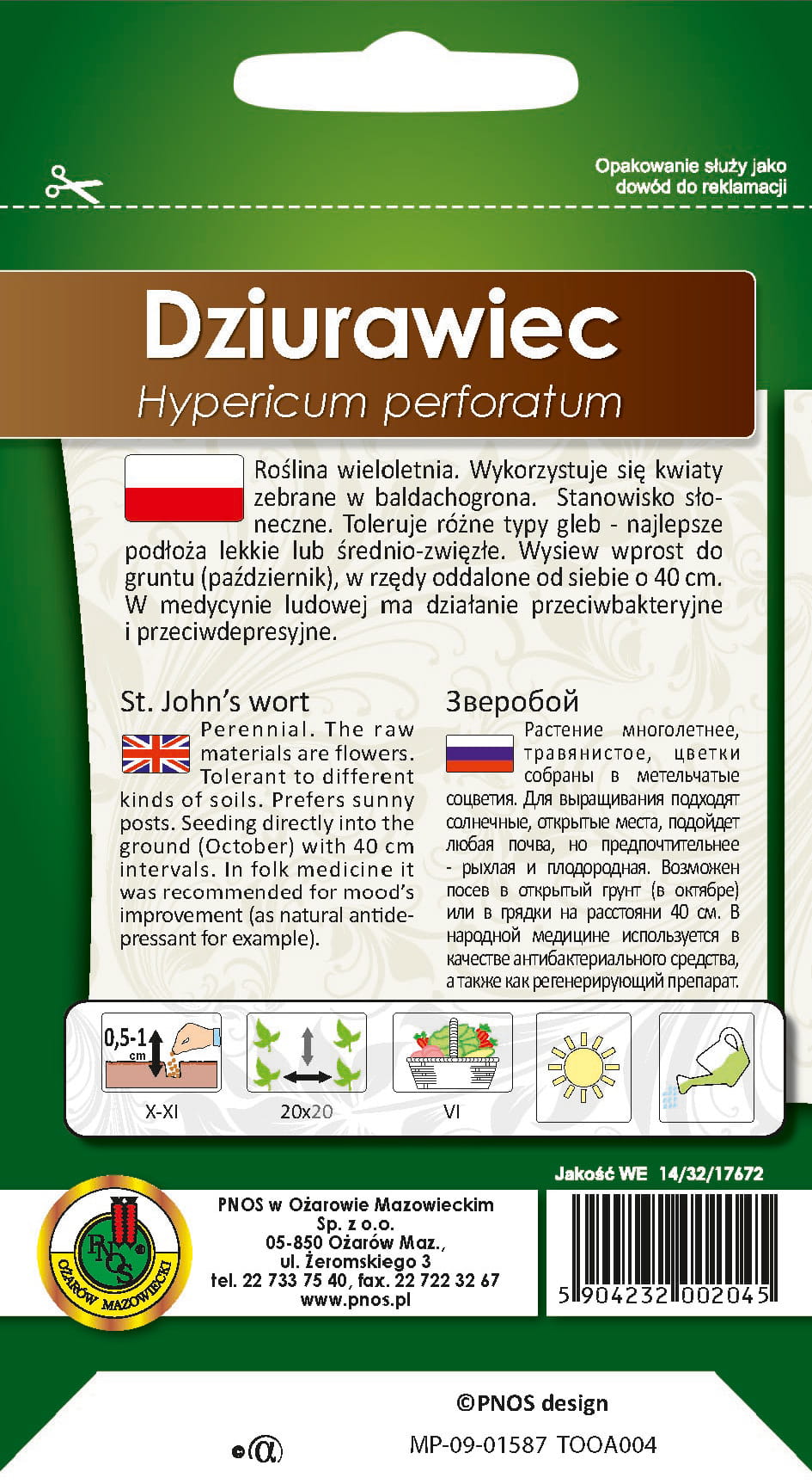 - Roślina wieloletnia. Znana jako m.in. jako dziurawiec pospolity, ruta polna, świętojańskie ziele, ziele św. Jana. Zbierane i suszone kwiaty, rosnące w gęstych baldachogronach.