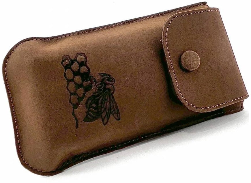 ETUI NA OKULARY SKÓRZANE Z EMBLEMATEM PSZCZOŁY