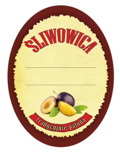 Śliczna etykieta samoprzylepna- śliwowica - tradycyjnie palona