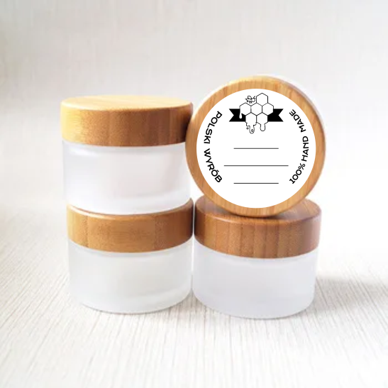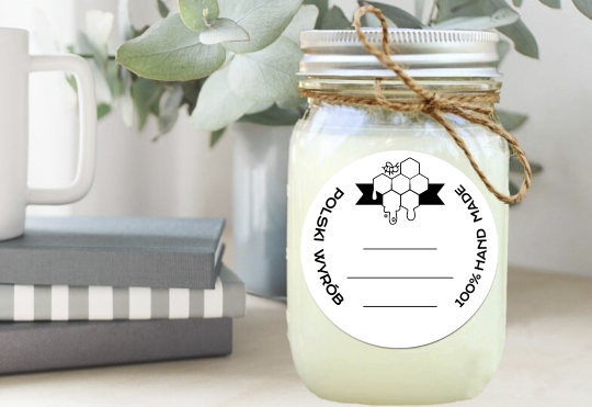 - Etykiety są uniwersalne -> przeznaczone na miody, przetwory, produkty pszczele, kremy, maści, kosmetyki, świece