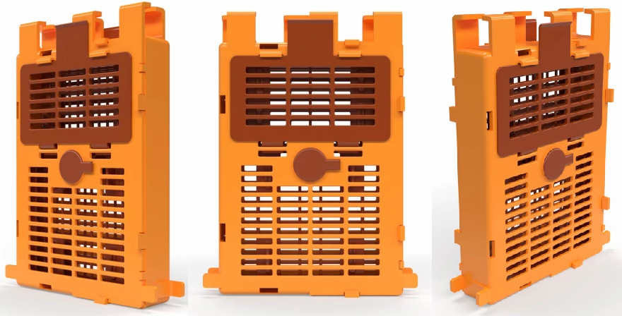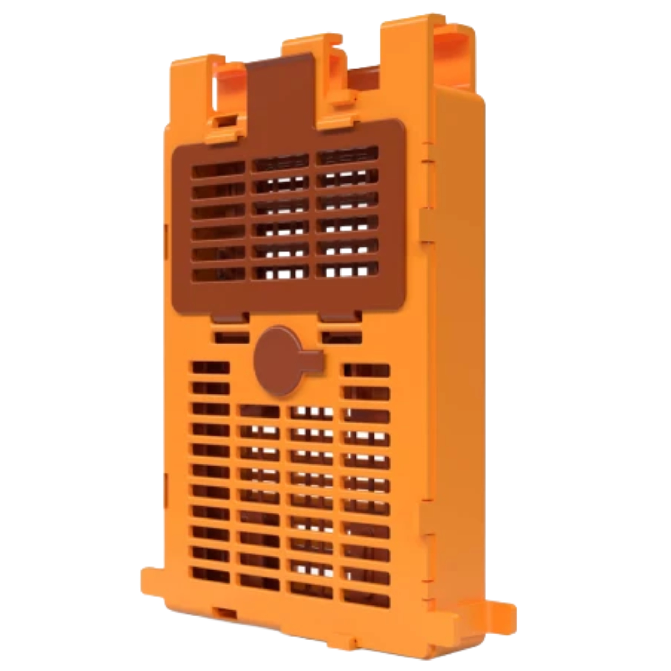 - Montaż: w zależności od zastosowanej w ulu zabudowy (zimnej lub ciepłej) można go zamontować w dowolnym miejscu plastra — centralnie lub z boku — a w razie potrzeby łatwo przenieść na nowy plaster lub ramkę z węzą.