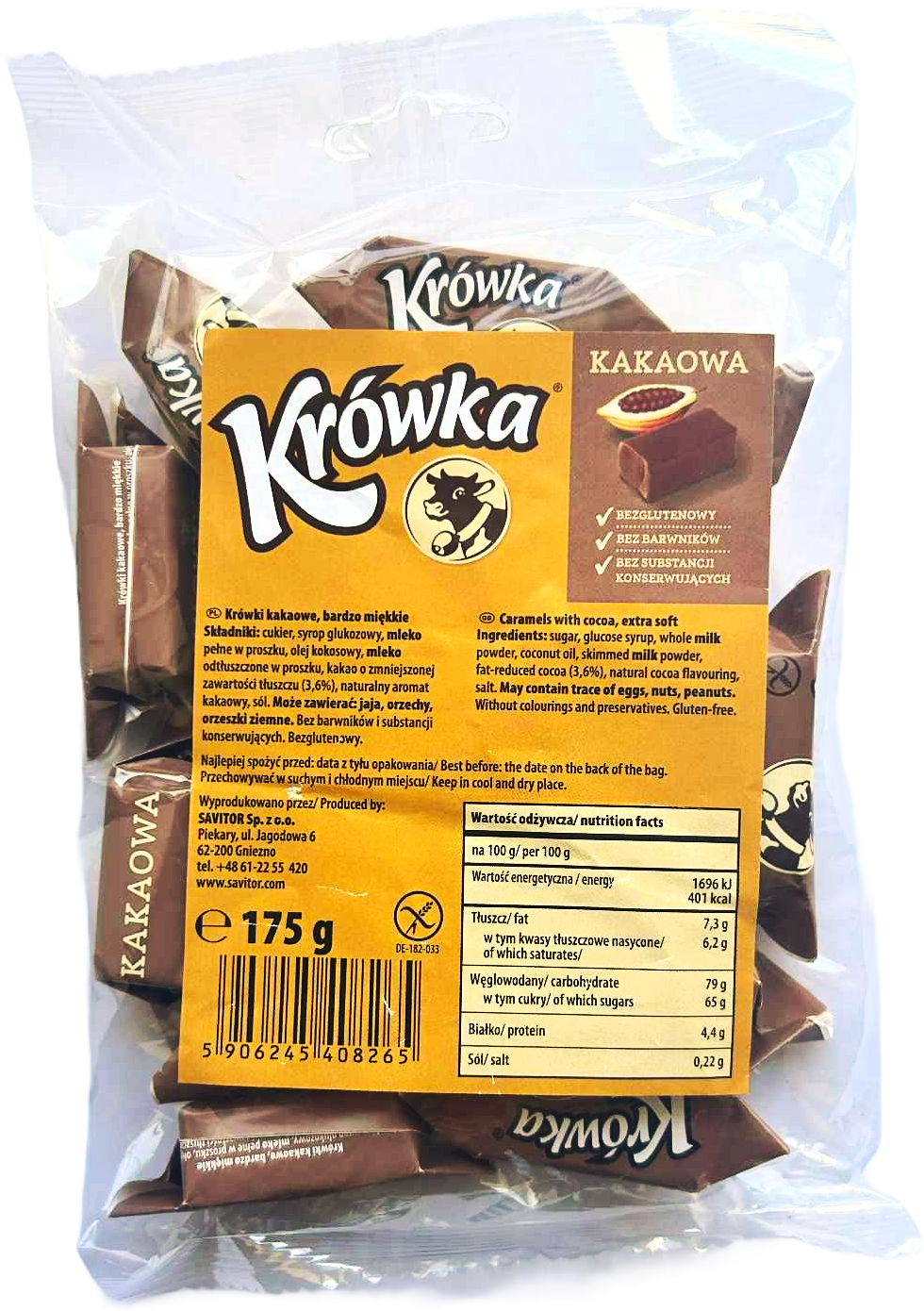 ✔️ Krówki nie zawierają sztucznych barwników, substancji konserwujących ani glutenu.