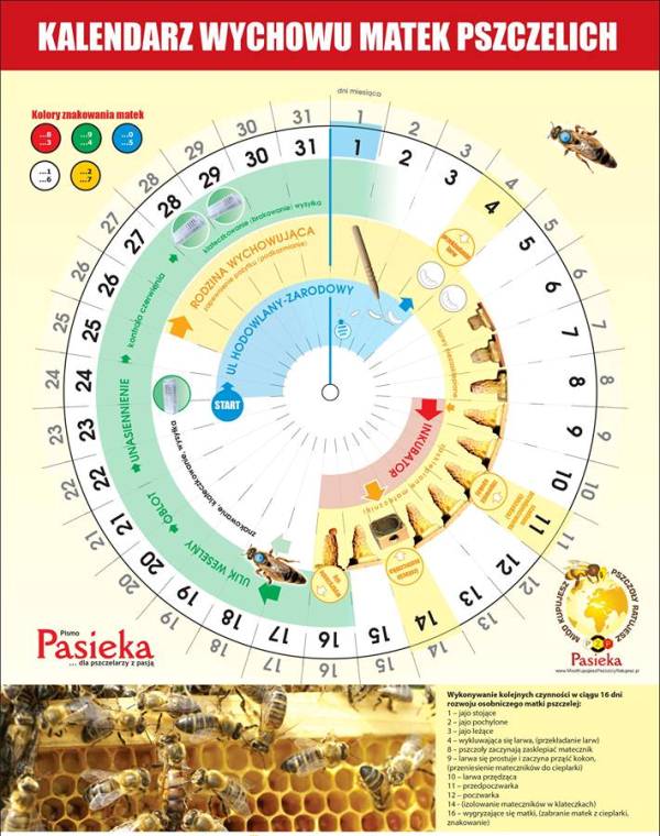 - posiada opis kolorów znakowania matek w poszczególnych latach.
