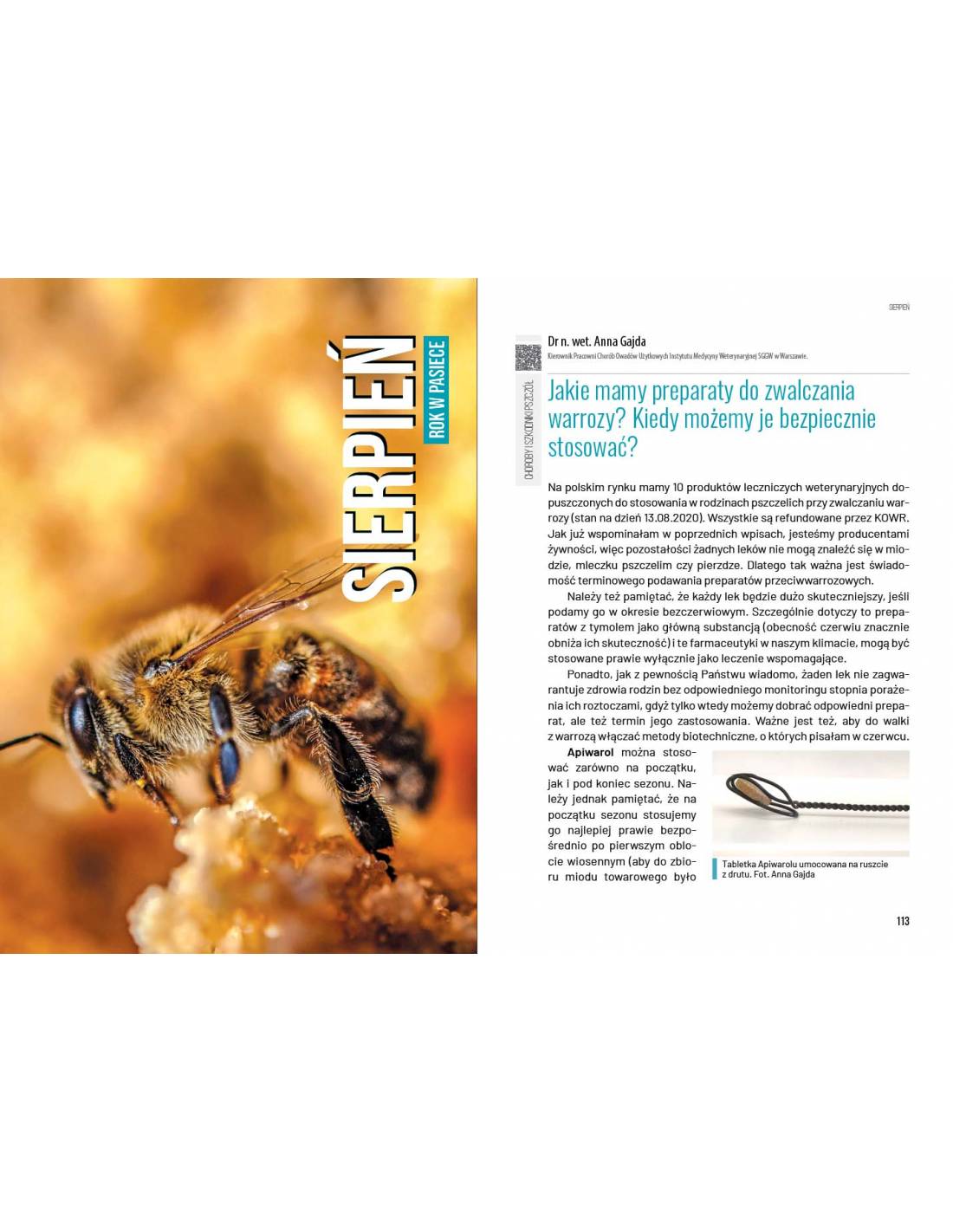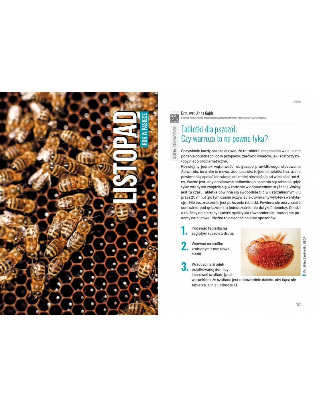 - prawidłowego całorocznego zwalczania warrozy i innych chorób pszczół (rozpisane na poszczególne miesiące),