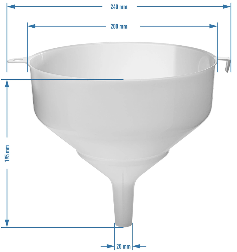 - Wysoki brzeg - nie martw się rozlanym trunkiem - dzięki dużej pojemności ok. 2,4 L i wysokiemu brzegowi lejek idealnie nada się do przelewania dużych ilości płynów.