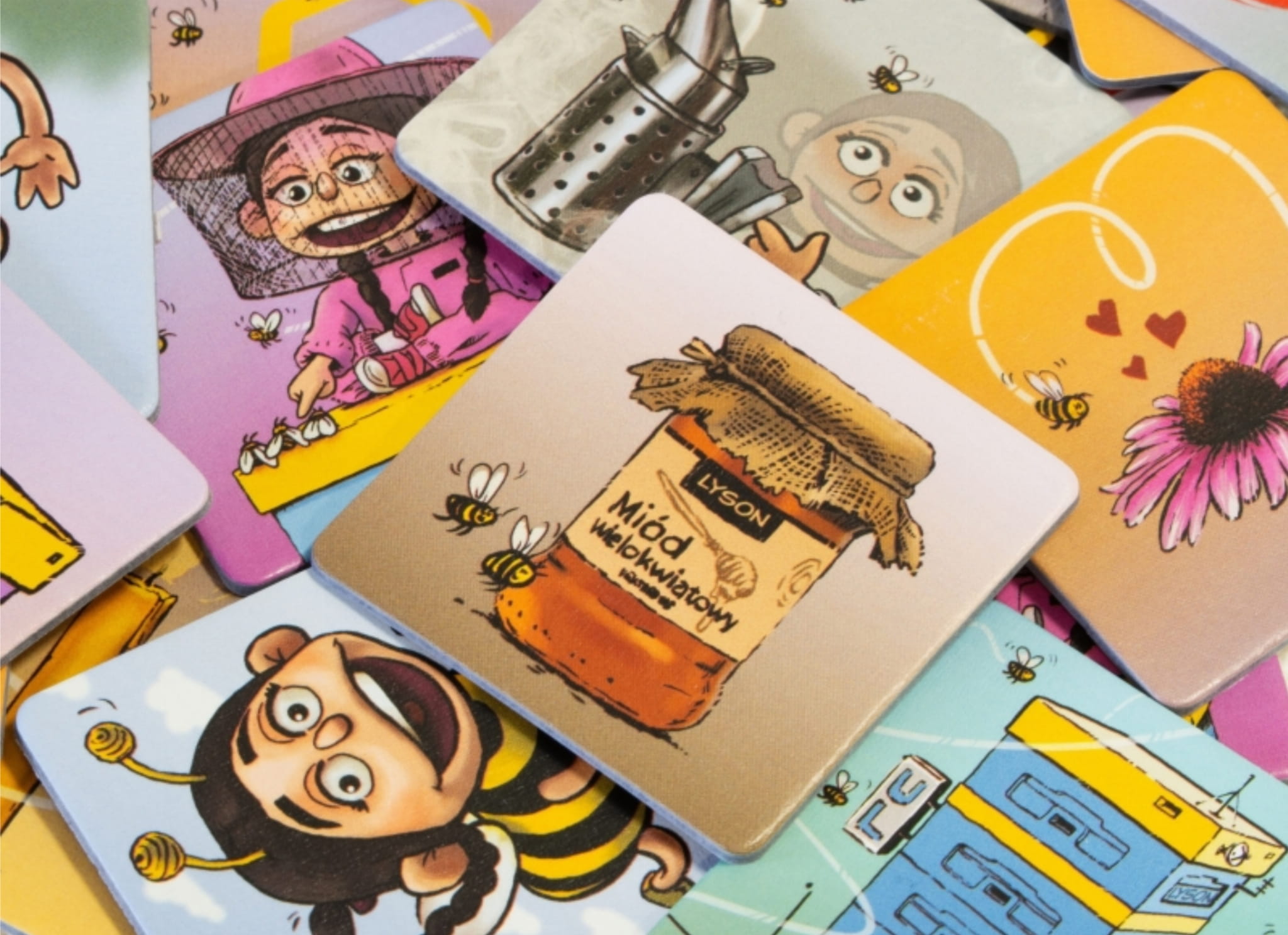 - Przyjazna i edukacyjna forma gry sprawia, że dzieci chętnie po nią sięgają, rozwijając swoje umiejętności w atmosferze zabawy, a jednocześnie uczą się o świecie pszczół i pracy pszczelarza.