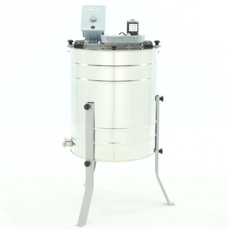 Miodarka diagonalna 4-plastrowa Wielkopolska, Langstroth, Ostrowskiej elektryczna 230V Ø500mm – MINIMA LINE Z ZAWOREM NIERDZEWNYM