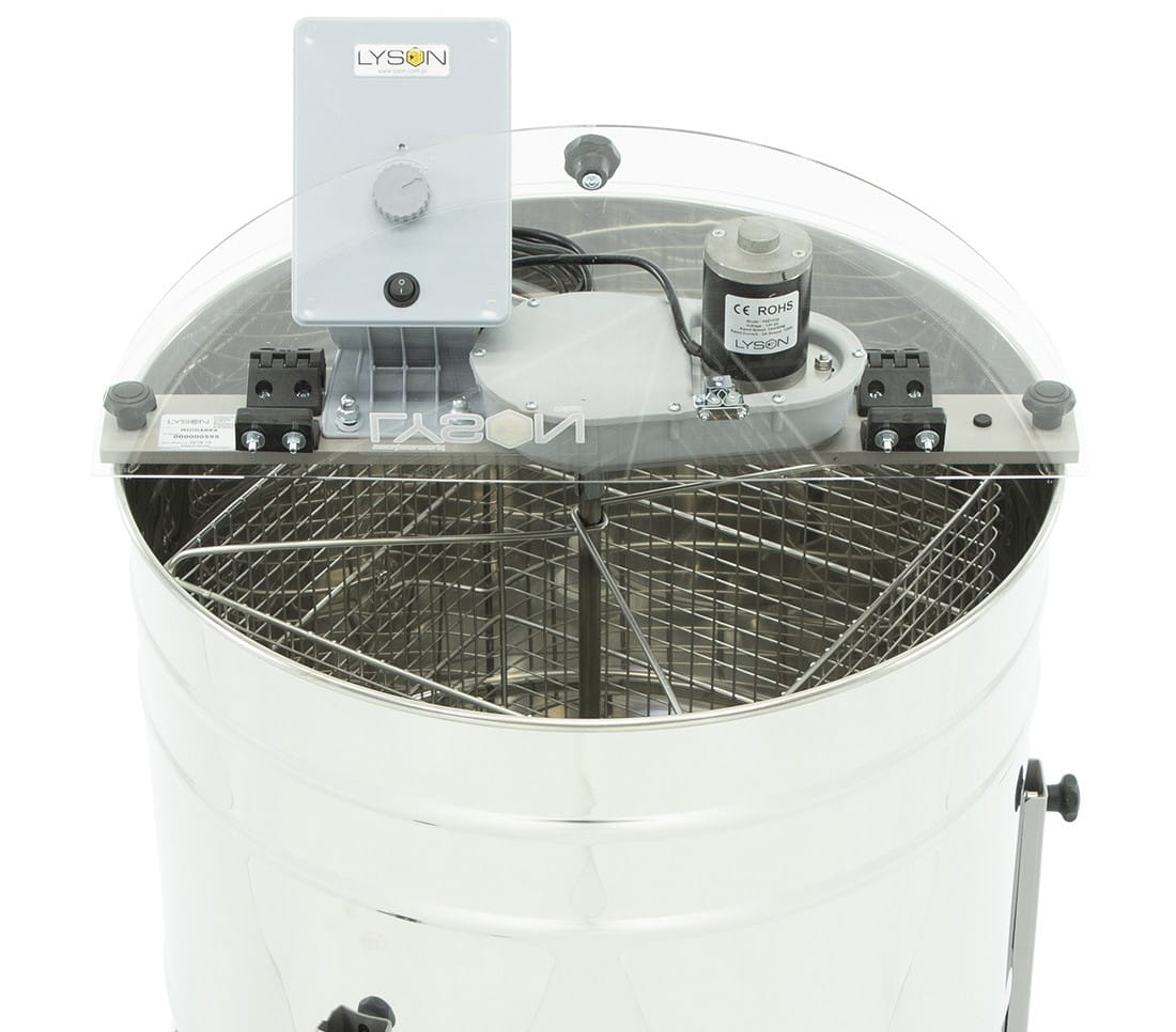 - Przeźroczysta pokrywa umożliwia wgląd w pracę urządzenia bez narażenia się na niebezpieczeństwo kontaktu z wirującymi elementami miodarki.