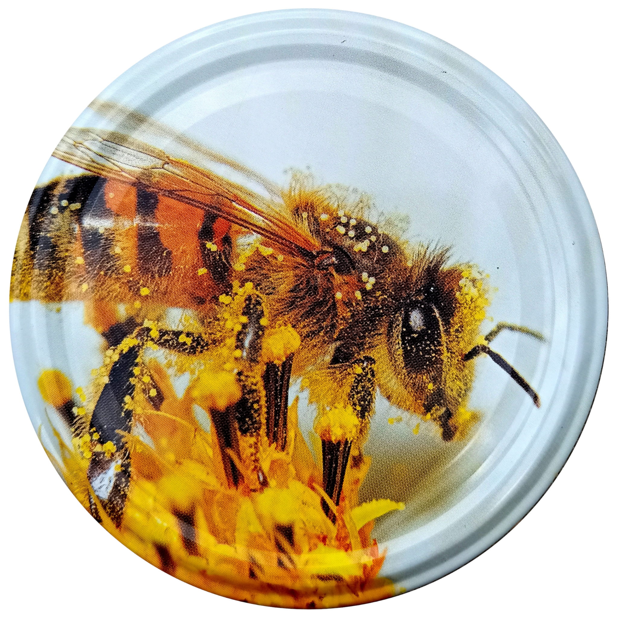 - Nakrętka na słoik 82 mm - DUŻA PSZCZOŁA NA KWIATKU