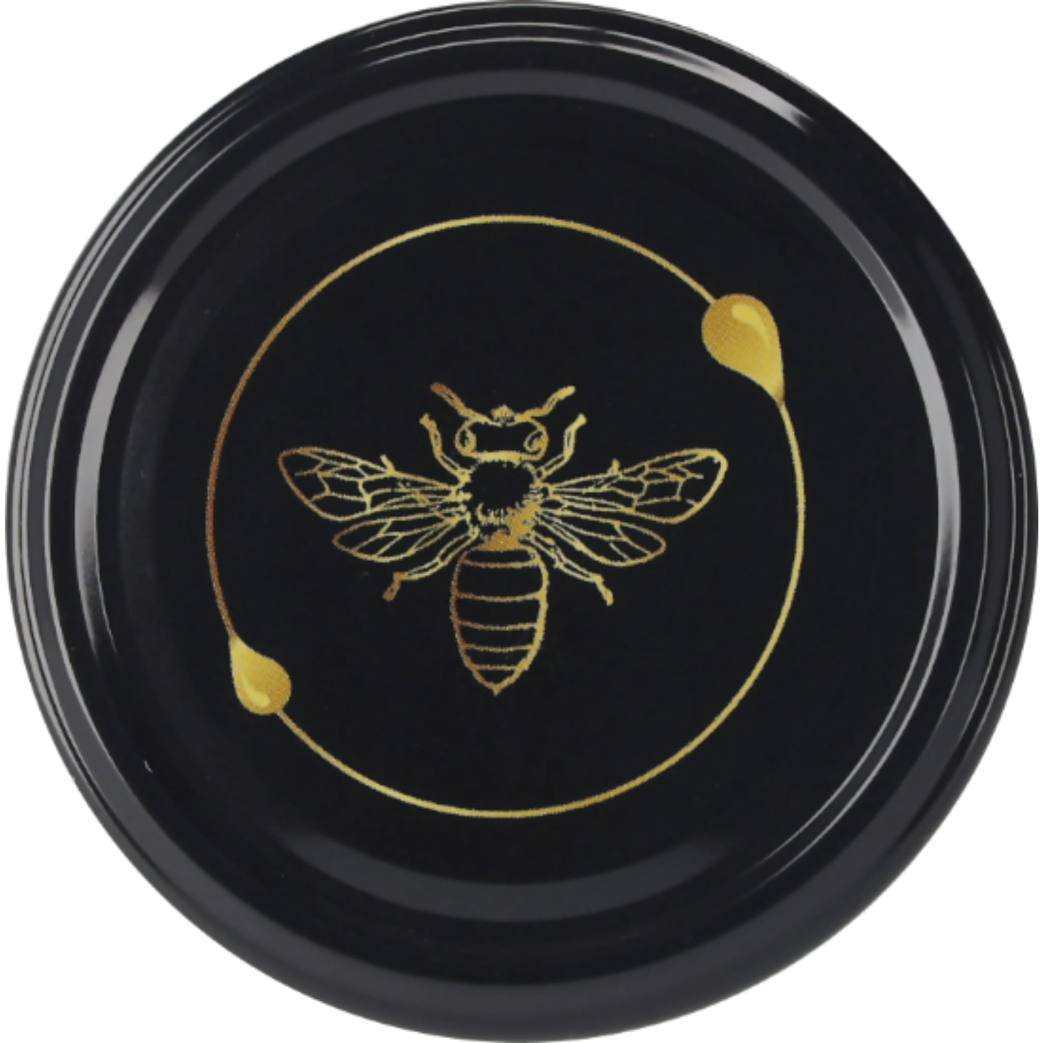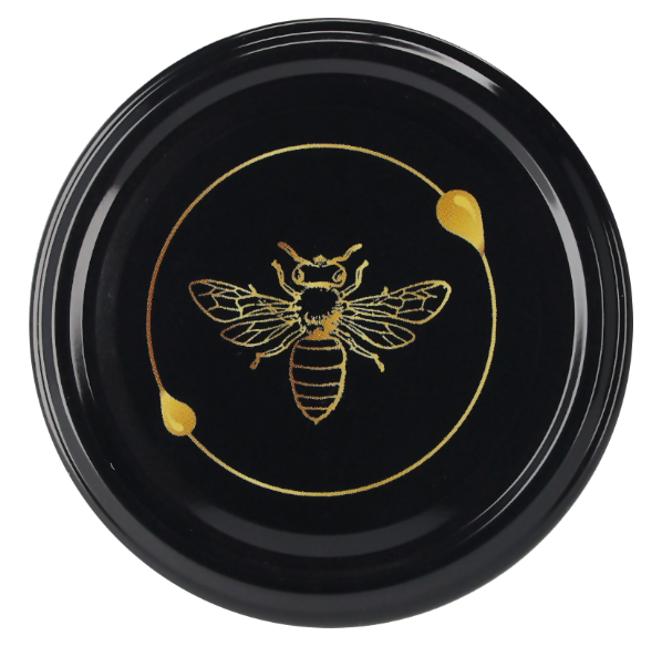 - Nakrętka na słoik 82 mm - Złota pszczoła na czarnym tle