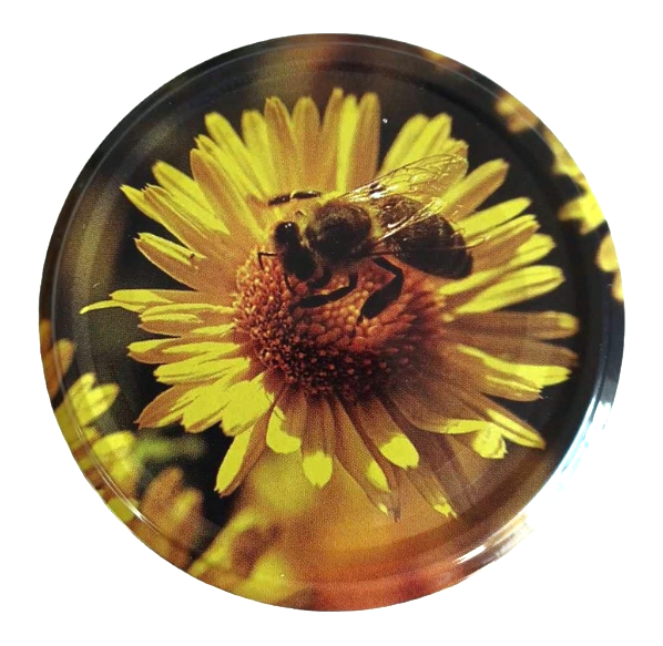 - Nakrętka na słoik 82 mm - Pszczoła na żółtym kwiatku