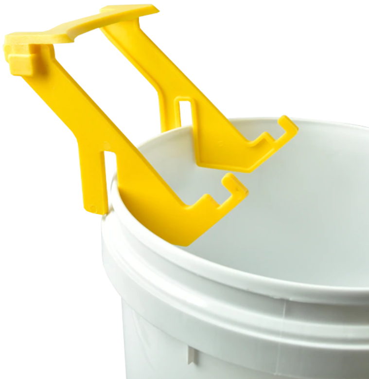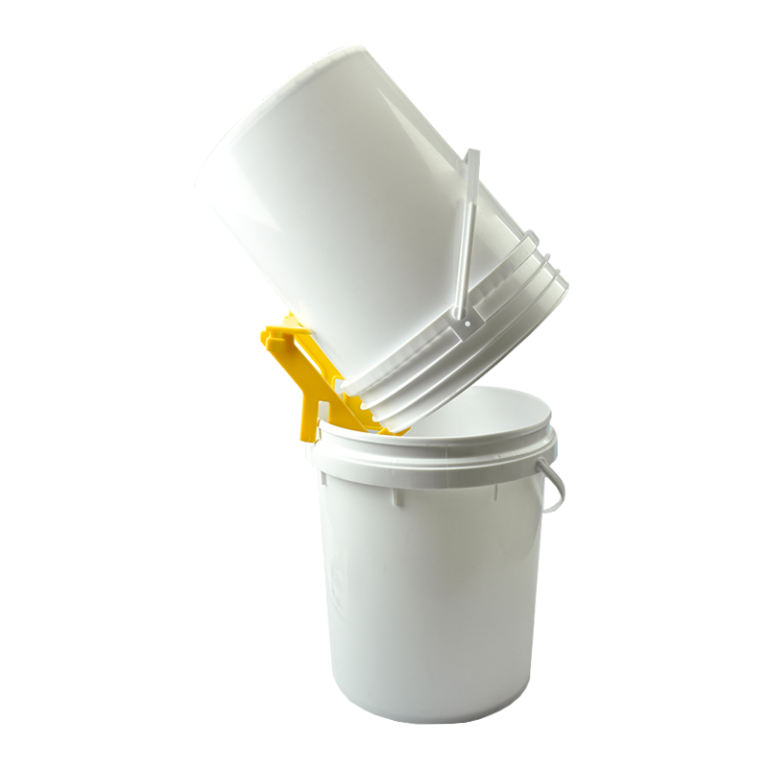 - Stojak zakładamy na pojemnik na miód a drugi (opróżniony) kładziemy na ociekaczu - dzięki temu cały miód spływa do pojemnika