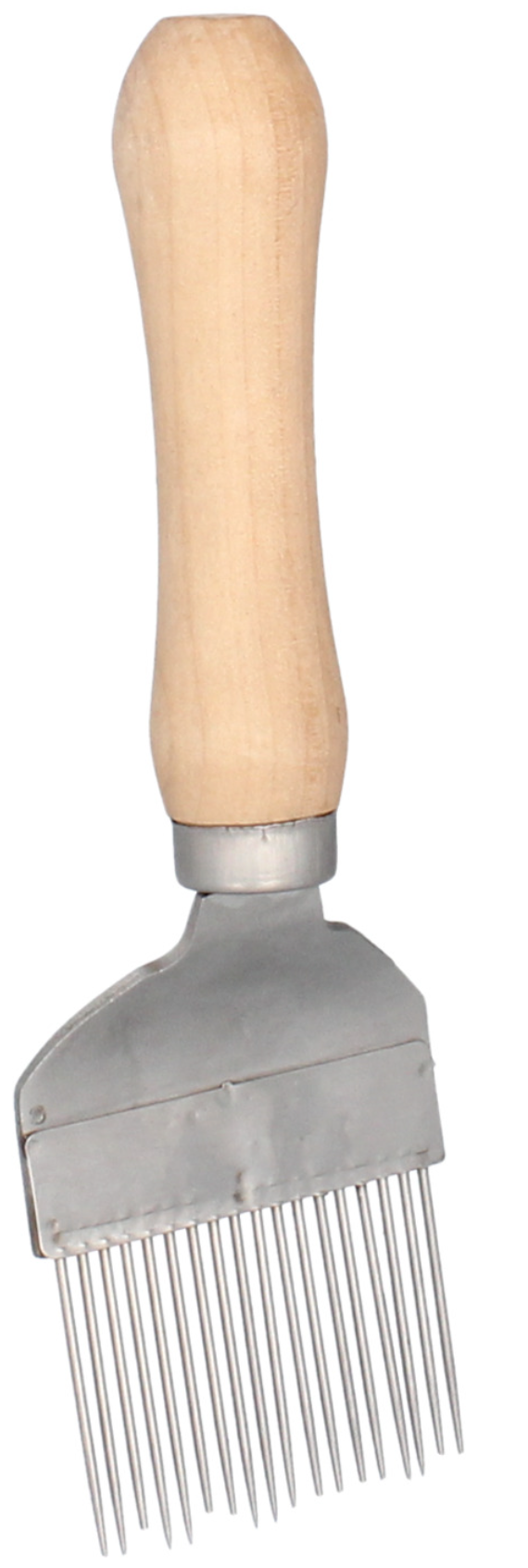 - Materiał: drewniany uchwyt, aluminium, stal nierdzewna