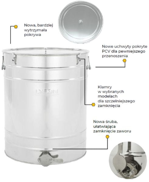 - pojemność 50 litrów - (możemy zmieścić około 70 kg miodu)