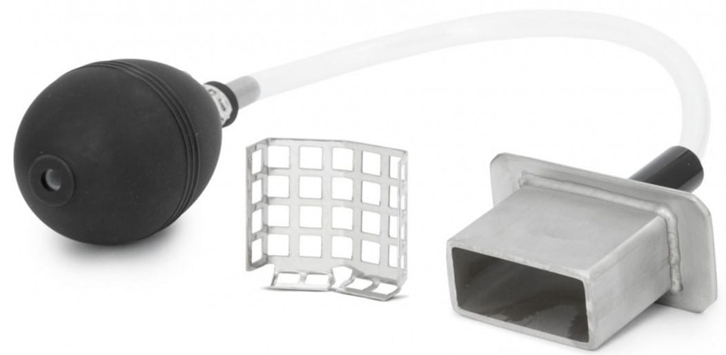 • naciskając gruszkę gumową pompować powietrze rurką plastikową do obudowy odymiacza