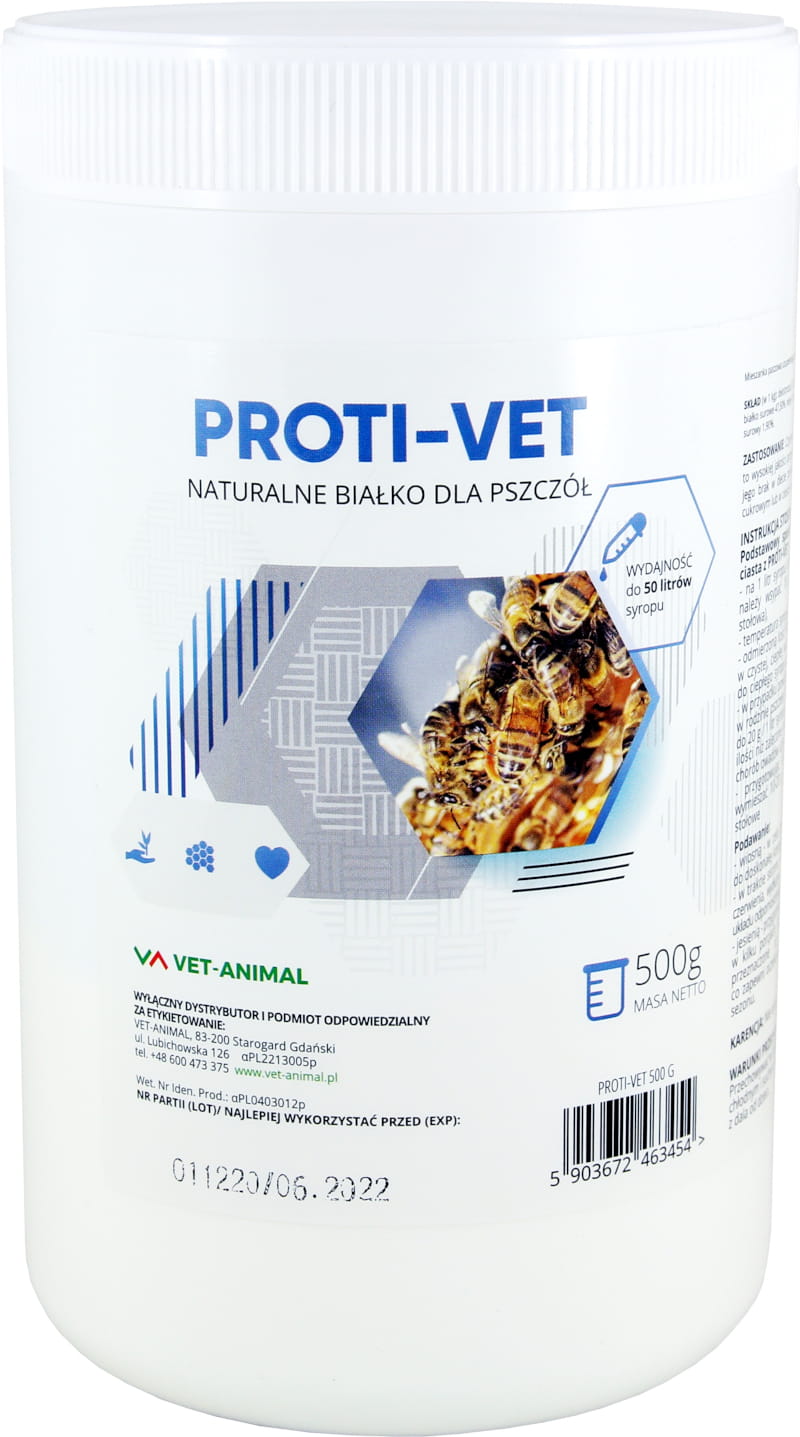 Czyste izolaty białkowe zawarte w PROTI-VET, to wysokiej jakości przyswajalne białko, które idealnie uzupełnia jego brak w diecie pokarmowej pszczół oraz nie zawiera białka sojowego. Do użycia w syropie cukrowym, w cieście miodowo-cukrowym lub w czystej postaci.