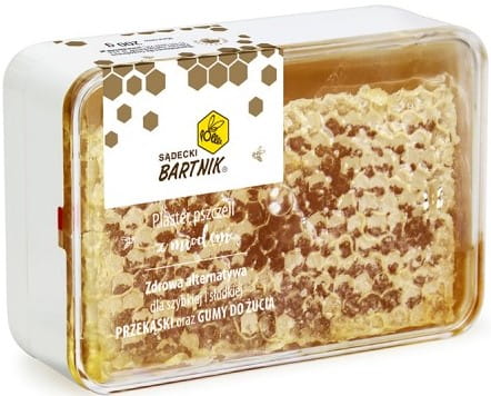 - Plaster pszczeli z miodem - charakteryzuje się cennymi właściwościami prozdrowotnymi oraz odżywczymi. Miód w plastrze jest dojrzałym miodem pszczelim zasklepionym w komórkach plastra. Największą zaletą tegoż miodu jest naturalność oraz większe wzbogacenie pyłkiem, propolisem oraz woskiem pszczelim.