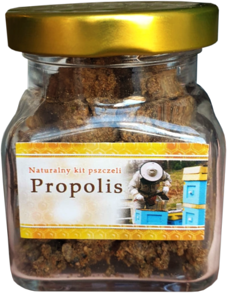 - Propolis sprzedawany w szklanym słoiczku z zakrętką