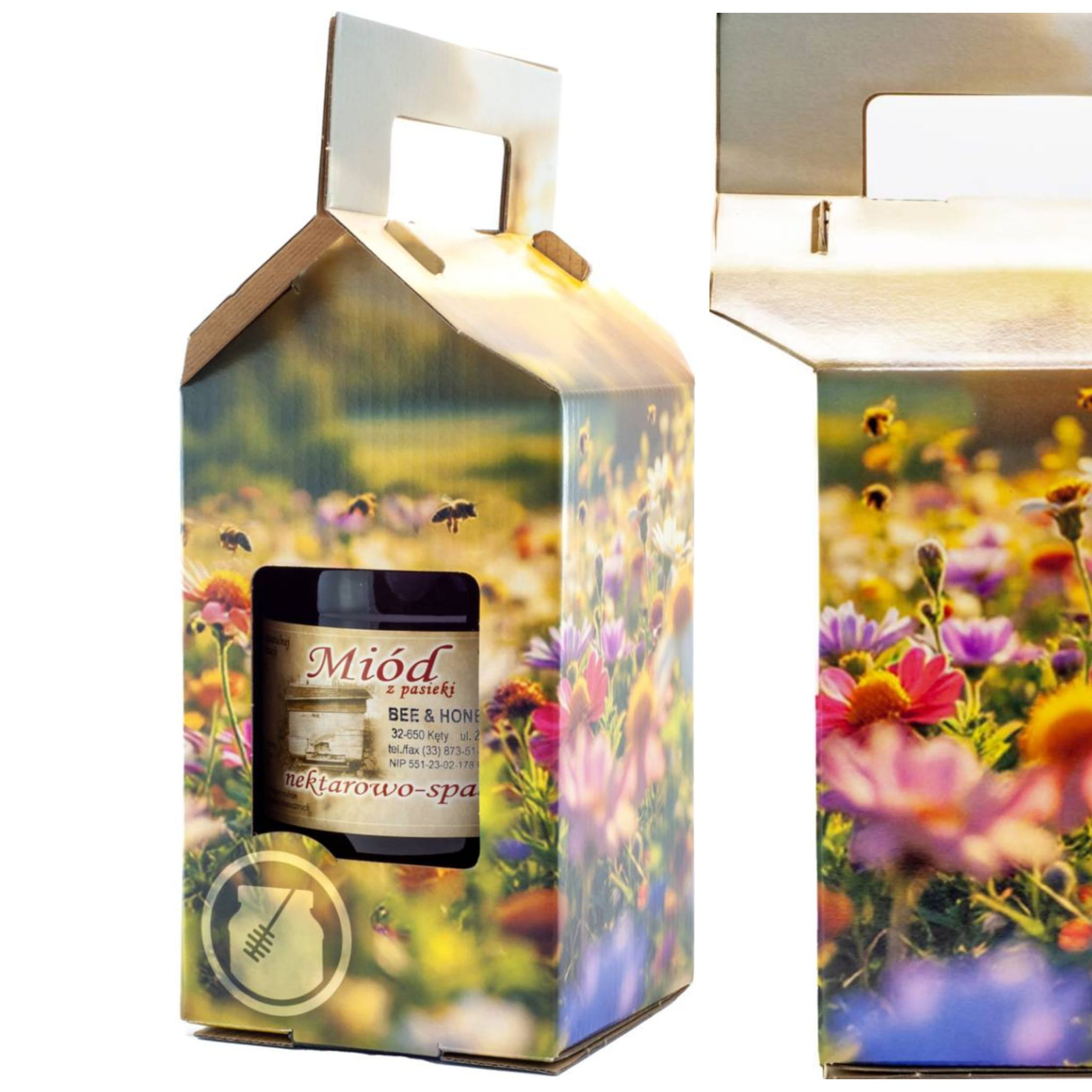 ✔️ Solidne dno i mocny uchwyt został zaprojektowany tak, aby pudełko wytrzymało ciężar pełnego słoika miodu (900ml).