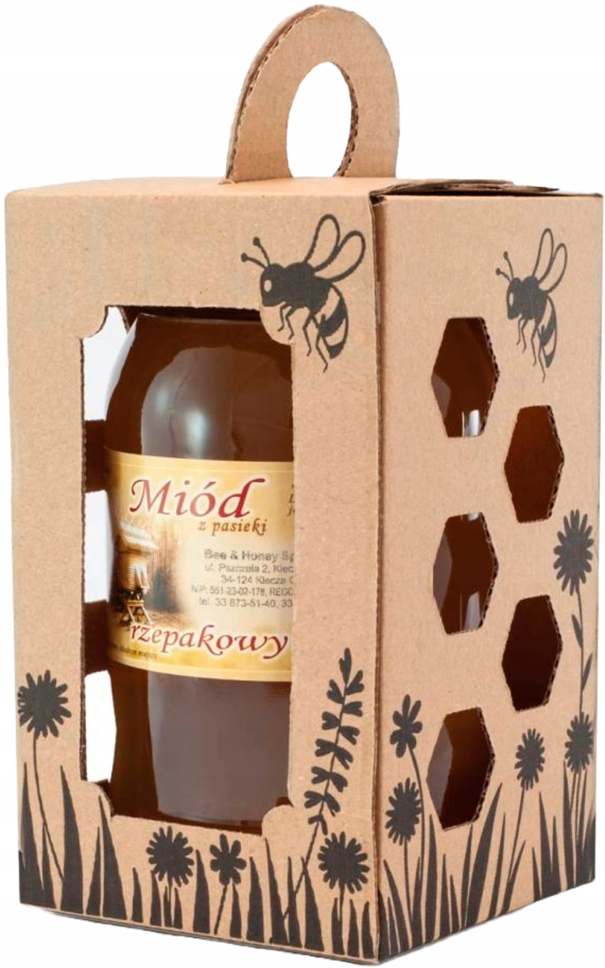 ✔️ Solidne dno i mocny uchwyt został zaprojektowany tak, aby pudełko wytrzymało ciężar pełnego słoika miodu (900ml).