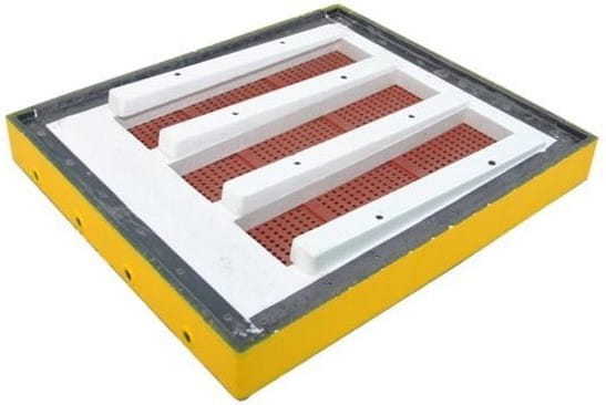 - W wysokiej dennicy higienicznej można zamocować segmentowy poławiacz pyłku. Jest to rama, w której jest umieszczona płytka strącająca obnóża pyłkowe, wykonana z plastikowych elementów, a pod nią znajduje się siatka o średnicy oczek 3,5 mm. Segmentowy poławiacz pyłku umieszcza się jako dodatkowy segment nad dennicą higieniczną tak, by płytka strącająca znajdowała się nad szufladą dennicy.