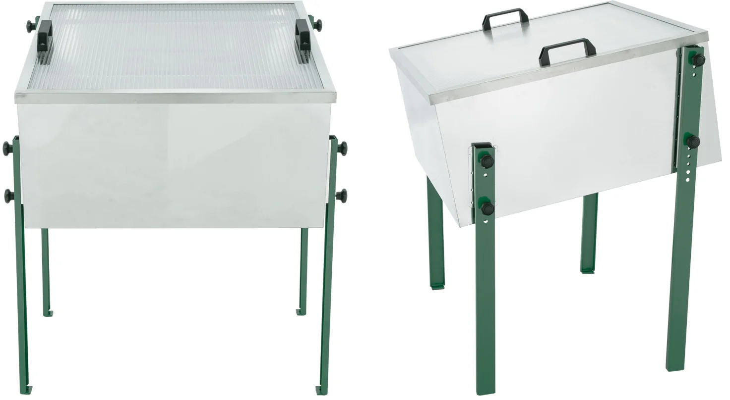 ✔️ Topiarka słoneczna umożliwia odzyskanie czystego wosku dzięki naturalnemu podgrzewaniu promieniami słonecznymi. Pokrywa z płyty komorowej skupia promienie, przyspieszając nagrzewanie wnętrza. Wnętrze wyposażono w perforowany wkład zatrzymujący zanieczyszczenia, a wosk spływa do brytfanki bez kontaktu z ramką. Urządzenie dostarczane jest w komplecie z nogami, wkładem, brytfanką i pokrywą, z możliwością regulacji wysokości.