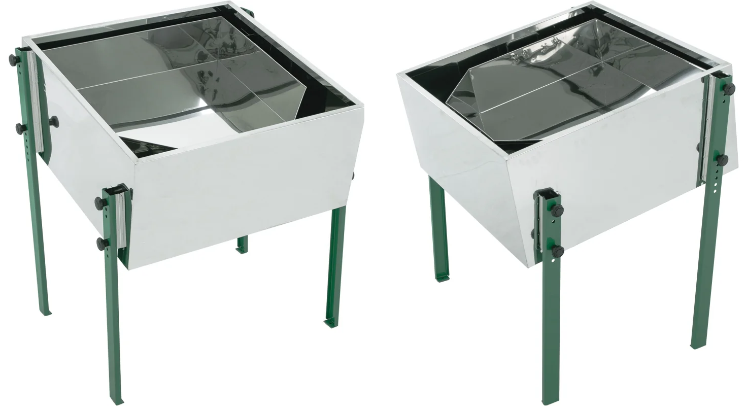 ✅ Topiarka słoneczna ze stali nierdzewnej o wymiarach 680x680 mm. Wykorzystuje energię słoneczną do ekologicznego i skutecznego wytopu wosku.