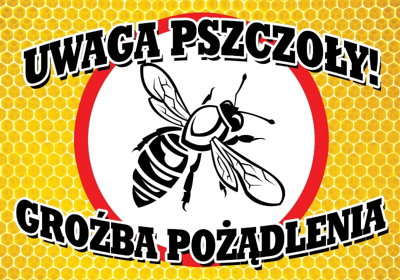 Tablica ostrzegawcza "stop uwaga pszczoły"