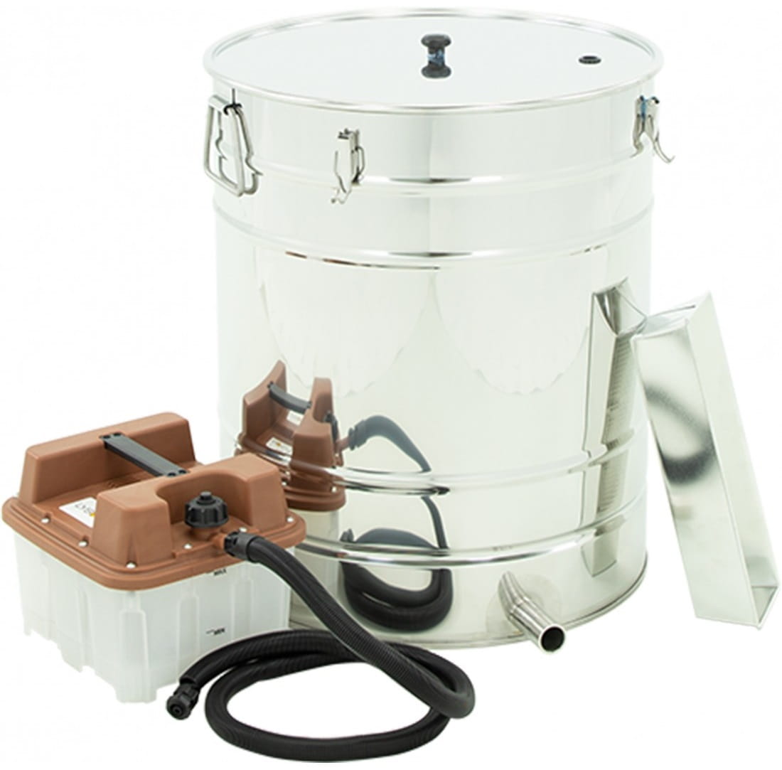 - W topiarce na bazie odstojnika nierdzewnego urządzenie główne wyposażono w wytwornicę pary. Bez trudu topi ona zaimplementowany wosk pszczeli. Pojemności urządzeń to 100l, odpowiednio FI 500. Prezentowane urządzenie doskonale sprawdzi się w każdym rodzaju pasieki. Do topiarki w pierwszym kroku wlewamy wodę, która zostaje podgrzana. W momencie wrzenia wody, para wodna powoduje topnienie umieszczonego w topiarce wosku.