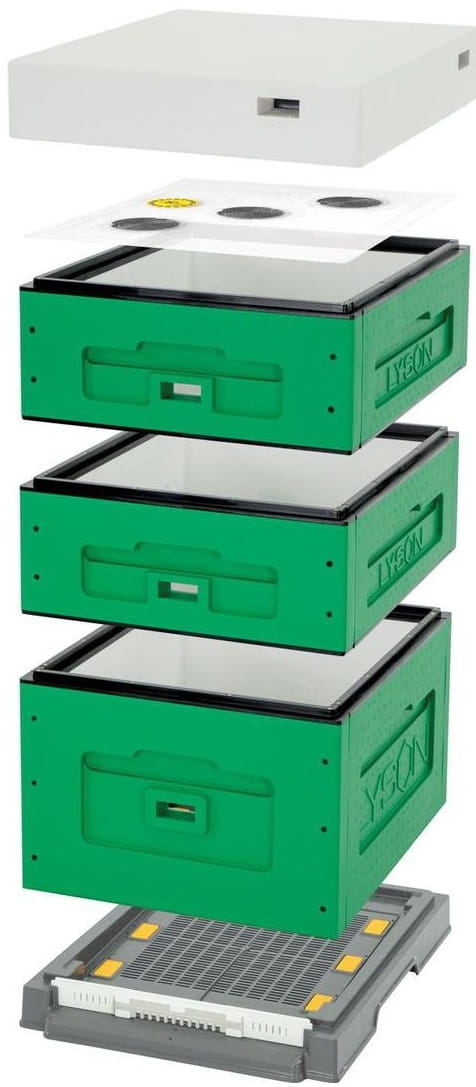 - Utwardzony styropian bardzo dobrze izoluje, a przy tym ule z niego wykonane są lekkie, co w przypadku pasiek wędrownych ma duże znaczenie. Należy zawsze pamiętać o zapewnieniu dobrej wentylacji. W tym celu, w elementach ula, takich jak korpusy, daszek czy dennica fabrycznie wykonano otwory, które zabezpiecza się korkami wentylacyjnymi z sitkiem (aby do ula nie przedostały się szkodniki) lub zamyka zaślepkami (czyli korkami styropianowymi).