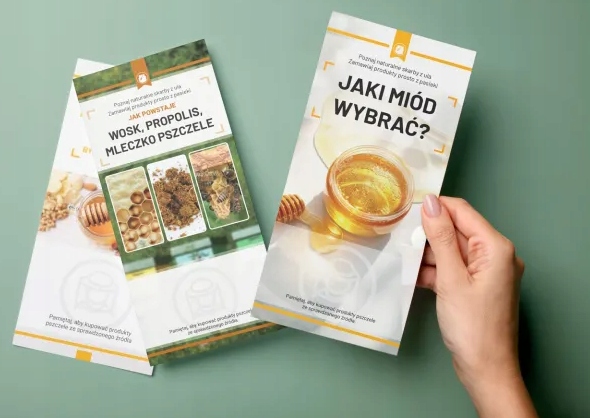 - Personalizacja – każda ulotka posiada dedykowane miejsce na pieczątkę, dzięki czemu klient zawsze będzie miał pod ręką kontakt do Twojej pasieki.