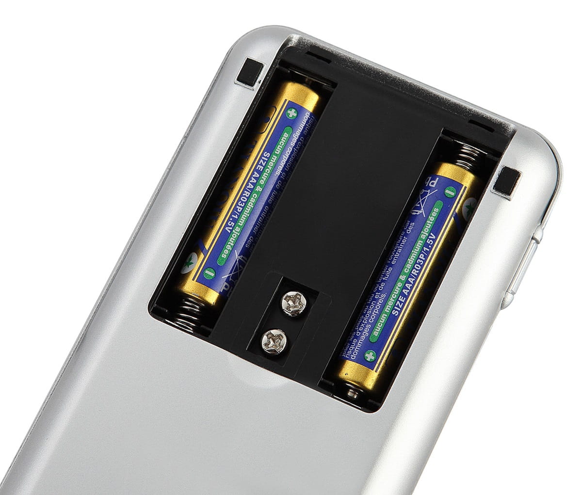 - Zasilanie: 2x bateria 1,5V AAA (są w zestawie)