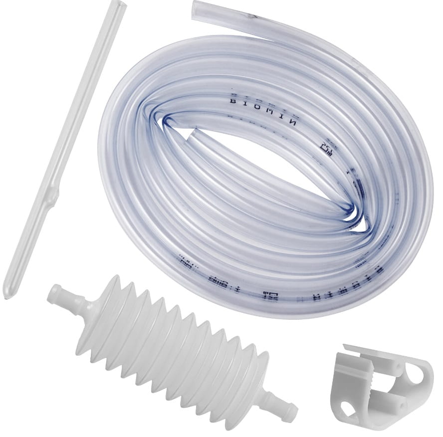 - Zestaw dla każdego - zestaw składający się z elastycznego wężyka, szklanej rurki, plastikowego zacisku i plastikowej pompki sprawdzi się zarówno przy pracy początkującego jak i zaawansowanego winiarza.