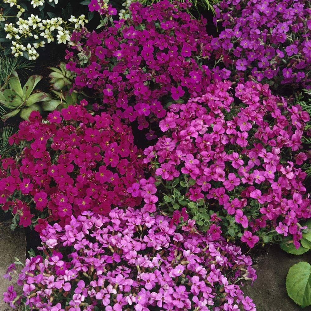 - kwiaty bardzo drobne i liczne, w kolorach fioletowym, fiołkowym, intensywnie czerwonym i różowym, które tworzą piękne kobierce.