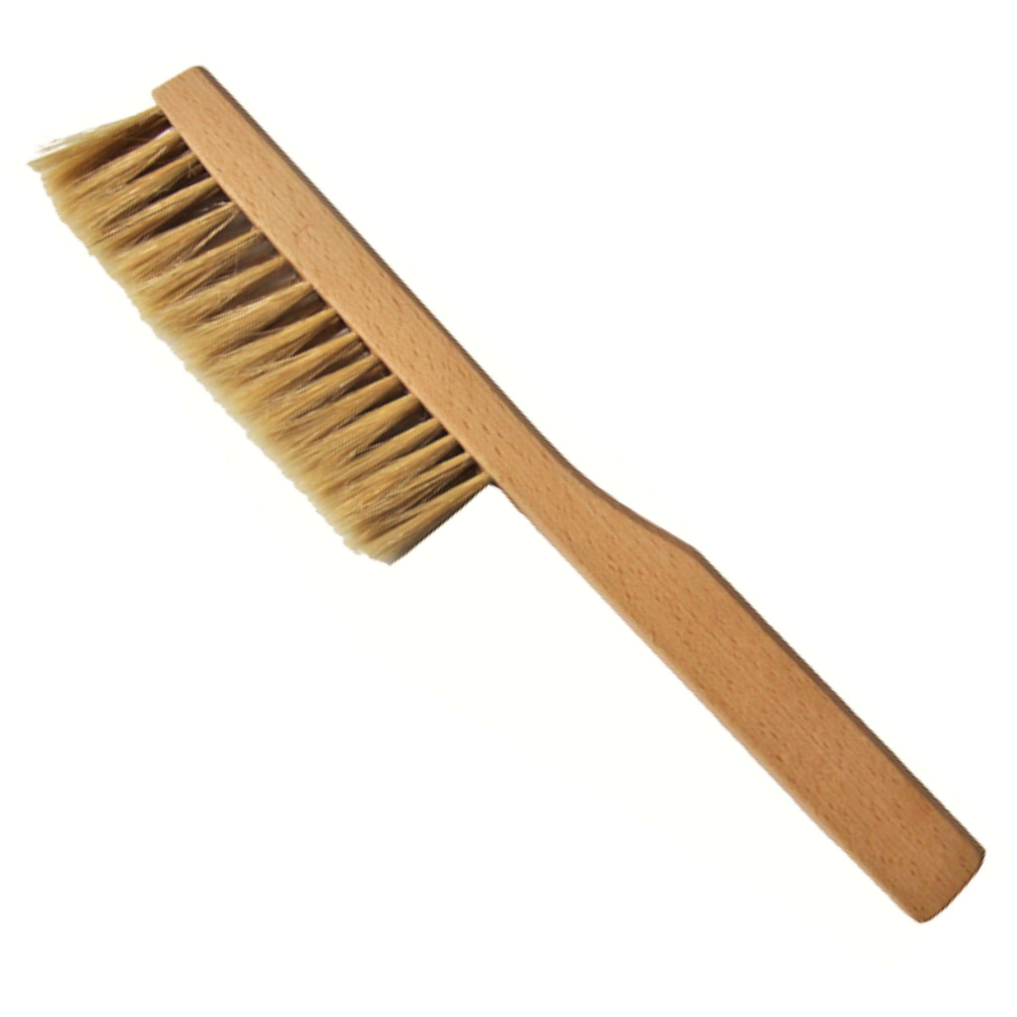 - 2-rzędowe włosie: Naturalne włosie ułożone w DWA rzędy zapewnia sztywność przy zachowaniu miękkości, co umożliwia delikatne i skuteczne omiatanie pszczół.